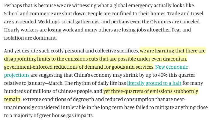 Well... there may be a lock down with greatly reduced economic activity but electricity and gas are still being burned in countless millions of homes (for example). Because we haven't transitioned our energy source it seems obvious that emissions will still be very significant.