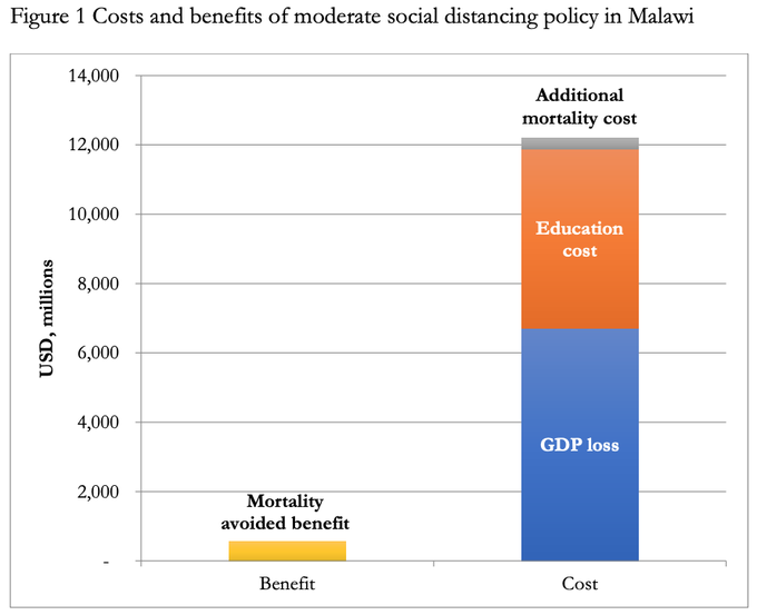 Dear James, I'll bite Take a look at our paper with Malawi https://www.npc.mw/docs/NPC%20COVID%20cost%20benefit%20analysis%20Malawi.pdf … — or short thread here https://twitter.com/BjornLomborg/status/1263495512856068098 … Shows moderate shutdown leaves Malawi and future 25x worse off Could avoid more deaths, 4,000x cheaper Isn't this important+relevant to know?pic.twitter.com/kE21rUVYWR