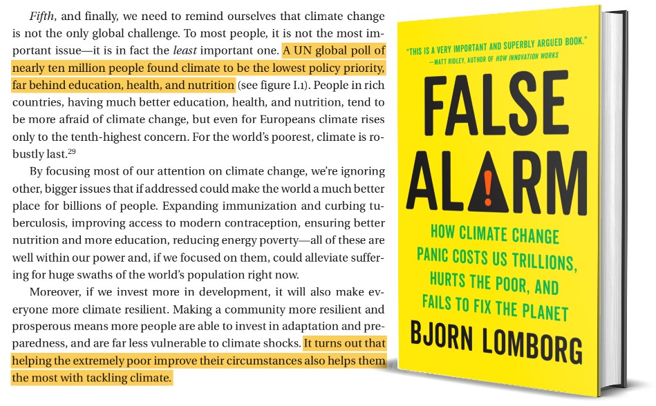 ⚠️Climate alarmism leads to bad policies that cost trillions 💸 We can do better and in my book I describe 5 crucial policies ➡️ http://ow.ly/HUkU50A9v1o  The Fifth, other problems more urgent and effective than climate. Prosperity also helps the poor best with climate.pic.twitter.com/6LYpkfZ6KJ