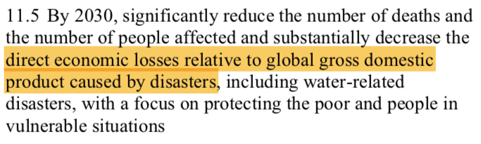 Measuring catastrophe cost in % of GDP is exactly what UN recommends in two of its Sustainable Development Goals 1.5 and explicitly in 11.5: "Indicator 1.5.2 Direct economic loss attributed to disasters in relation to global gross domestic product (GDP)" https://unstats.un.org/sdgs/indicators/Global%20Indicator%20Framework%20after%202020%20review_Eng.pdf …pic.twitter.com/RzOSayQmEB