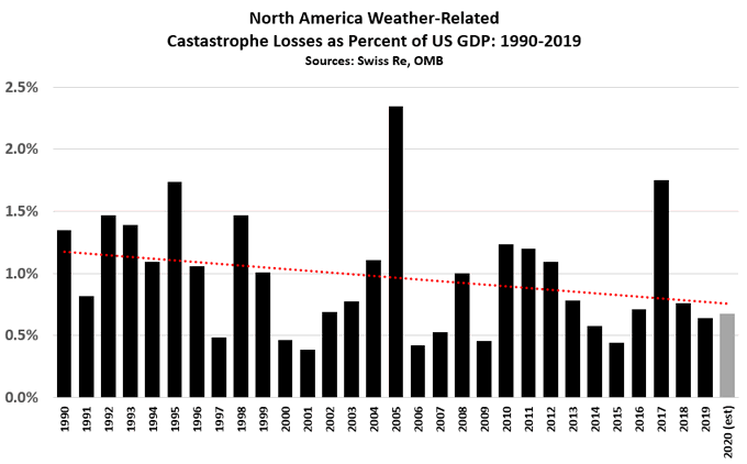 Tremendously misleading. The number of billion-dollar disasters will of course increase as society gets richer When corrected for increased wealth, the world and the US are not seeing increasing damages (but insignificantly *decreasing* damages) https://twitter.com/CNN/status/1347601622487150592 …pic.twitter.com/GLAH7WxqFG