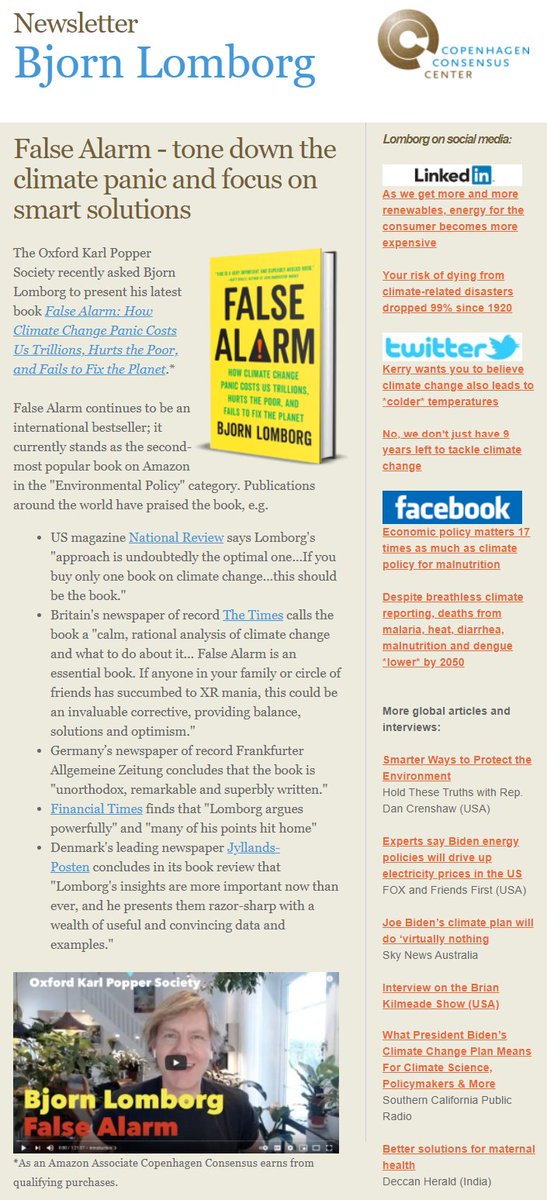 Dr Lomborg goes back a long way, being the first European to take Professor Julian Simon and his book THE STATE OF HUMANITY seriously. I found the book in a Dayton, OH book store and it improved my mood immediately. Pay attention to this gentleman doomslayer.