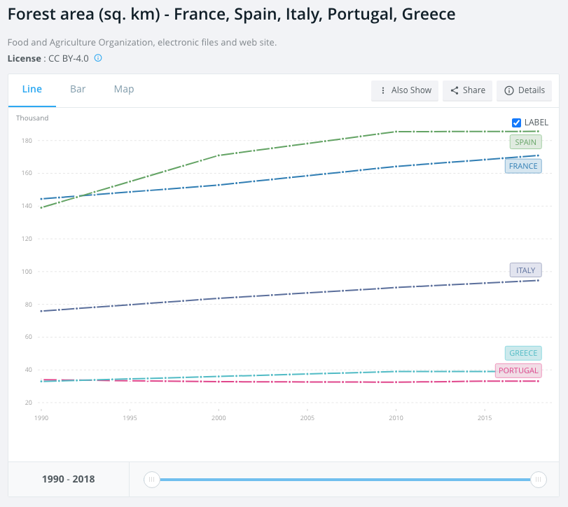 Increased for Spain, France, Italy, Greece while only slightly declining for Portugal (~90% of burned area) https://data.worldbank.org/indicator/AG.LND.FRST.K2?locations=FR-ES-IT-PT-GR …pic.twitter.com/3idUZI73xF