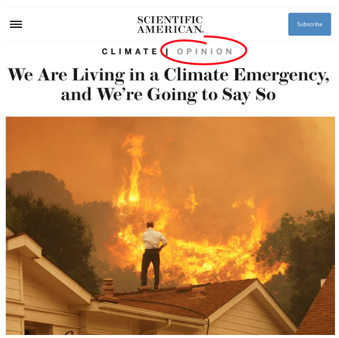 Scientific American insists climate change renamed “climate emergency” Claim “statement of science, not politics” but justify this through declarations by “1,859 jurisdictions in 33 countries … covering more than 820 million people.” As decided by politicians, not sciencepic.twitter.com/4xj0ygueVh