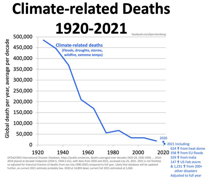 Love how "cherry-picking" has become the climate-crowd's favorite word for "this information I don't want anyone to see" Only utter doom is acceptable Well, here's what they don't want you to see: Climate-related disasters have declined dramatically https://twitter.com/BjornLomborg/status/1419352336128950280 … https://twitter.com/PerArnesjo/status/1419384541072986116 …pic.twitter.com/YqbPEj6jWS