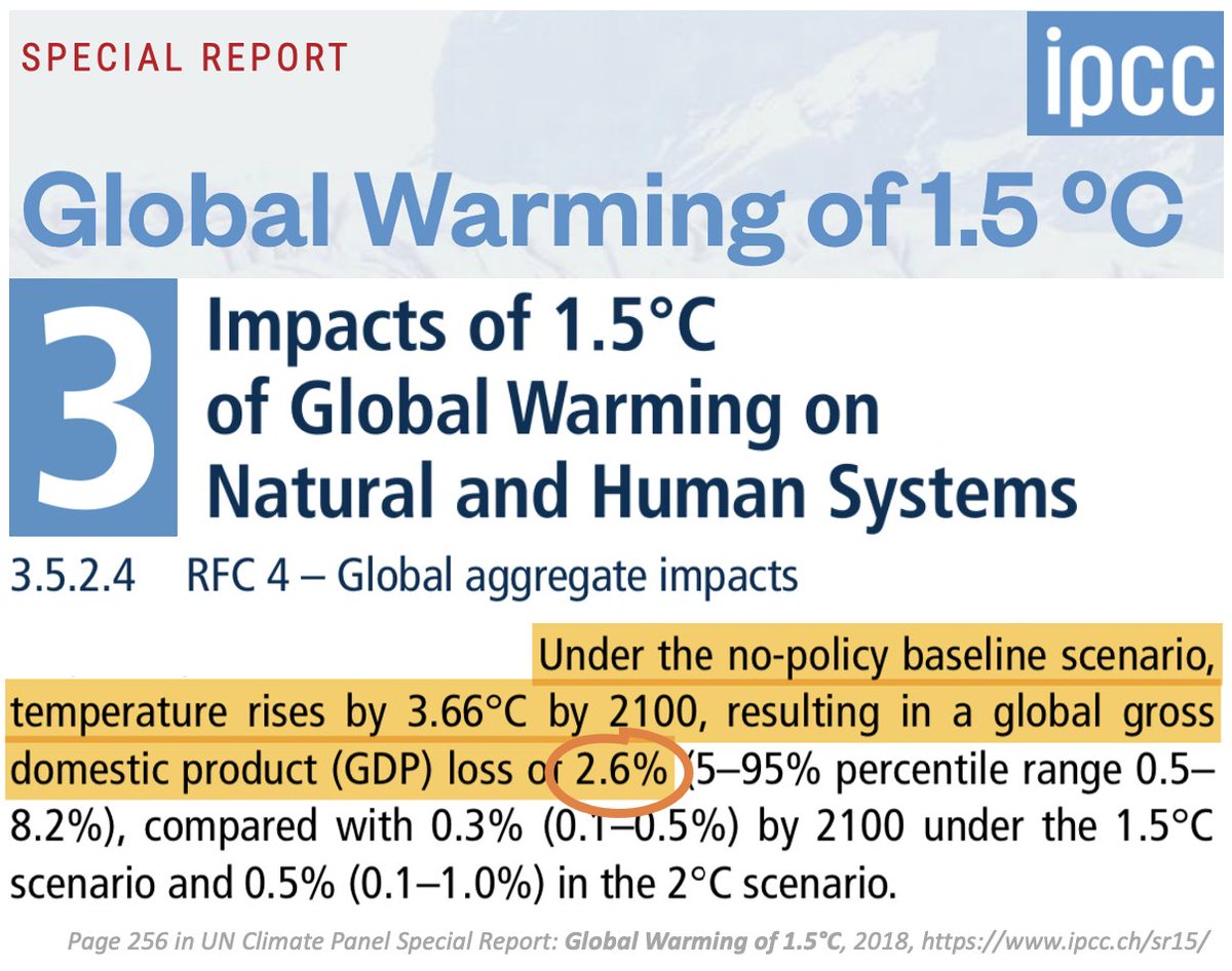 1) many other intermediate policies (IEA 2021 https://www.iea.org/reports/world-energy-outlook-2021/scenario-trajectories-and-temperature-outcomes …) 2) Don't lead to 3-4°C, but much lower 3) Silly to say "game over" — UN CLimate Panel estimate damages of 3.66°C at 2.6% of GDP 4) This is the point of econ: weigh costs+benefits see eg https://www.aeaweb.org/articles?id=10.1257/pol.20170046 …pic.twitter.com/iu0WGXFpnO
