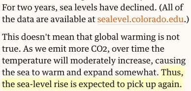 Dishonest Taken out of context (why there is no link: https://www.theguardian.com/commentisfree/2008/oct/14/climatechange-scienceofclimatechange …) Argues we should check our models against data and experience Ignores I *right before* confirm sea level rise And that rise will pick up again (from my earlier Guardian) https://www.theguardian.com/commentisfree/2008/jul/14/climatechange …pic.twitter.com/hkpuueNxaJ
