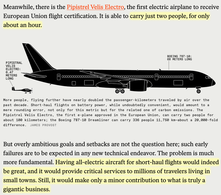 Elon Musk talked about a design he had for an electric plane. For it to work you need to travel much higher.