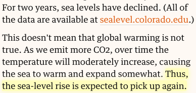 Dishonest Taken out of context (why there is no link: https://www.theguardian.com/commentisfree/2008/oct/14/climatechange-scienceofclimatechange …) Argues we should check our models against data and experience Ignores I *right before* confirm sea level rise And that rise will pick up again (from my earlier Guardian) https://www.theguardian.com/commentisfree/2008/jul/14/climatechange …pic.twitter.com/WdaSFGGHDN