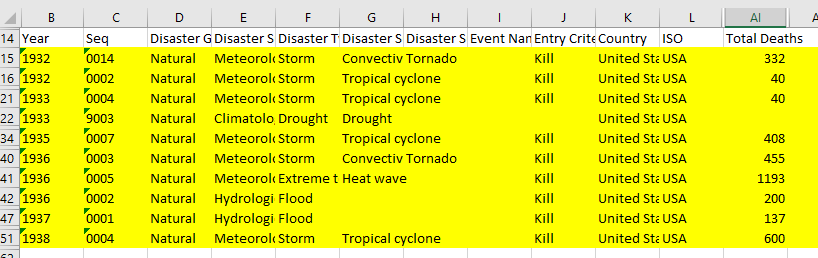 This is what the emdat data says for the Dustbowl in the US in terms of deaths. Only these. Approx 3000 over a decade If you genuinely think that that was the total number of deaths and want to keep promoting this data, that's a dangerous path to go downpic.twitter.com/dXBDoY3tFH