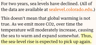 Dishonest Taken out of context (why there is no link: https://www.theguardian.com/commentisfree/2008/oct/14/climatechange-scienceofclimatechange …) Argues we should check our models against data and experience Ignores I *right before* confirm sea level rise And that rise will pick up again (from my earlier Guardian) https://www.theguardian.com/commentisfree/2008/jul/14/climatechange …pic.twitter.com/neU5Wr8nMd