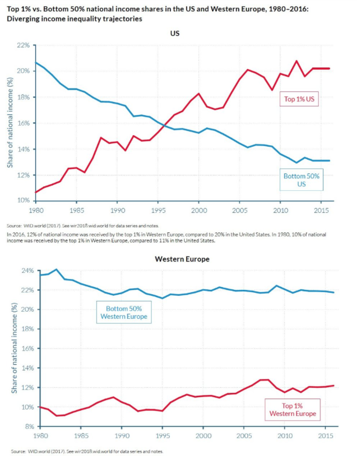 How does it look compensated for inflation? You also lose the differences within countries. And on a log scale things look more similar.