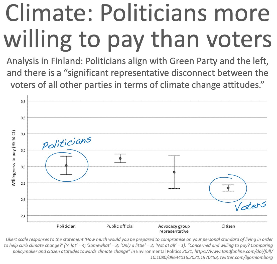 On climate politicians don't represent voters but the 𝗚𝗿𝗲𝗲𝗻𝘀 Study of Finnish politicians shows disconnect: Politicians 𝗺𝘂𝗰𝗵 more climate-worried than voters Politicians 𝗺𝘂𝗰𝗵 more willing to accept expensive climate policies than voters https://www.tandfonline.com/doi/full/10.1080/09644016.2021.1970458 …pic.twitter.com/zpeteOmCqe