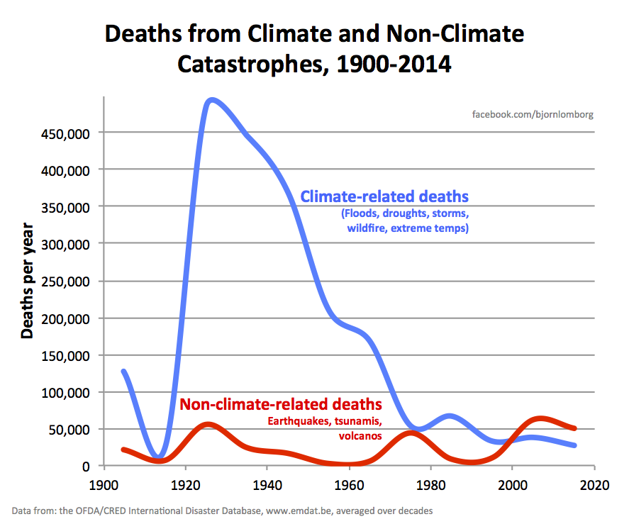 Ever fewer people die from natural disasters, especially from climate related natural disasterspic.twitter.com/Hok7qc3Tf6