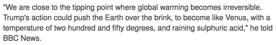 "We are close to the tipping point where global warming becomes irreversible": Prof. Stephen Hawking.http://www.bbc.com/news/science-environment-40461726 …