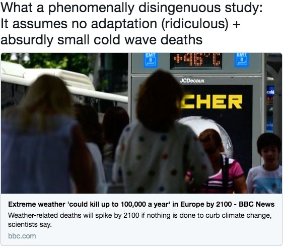 What a phenomenally disingenuous study: It assumes no adaptation (ridiculous) + absurdly small cold wave deaths http://www.bbc.com/news/world-europe-40835663 …