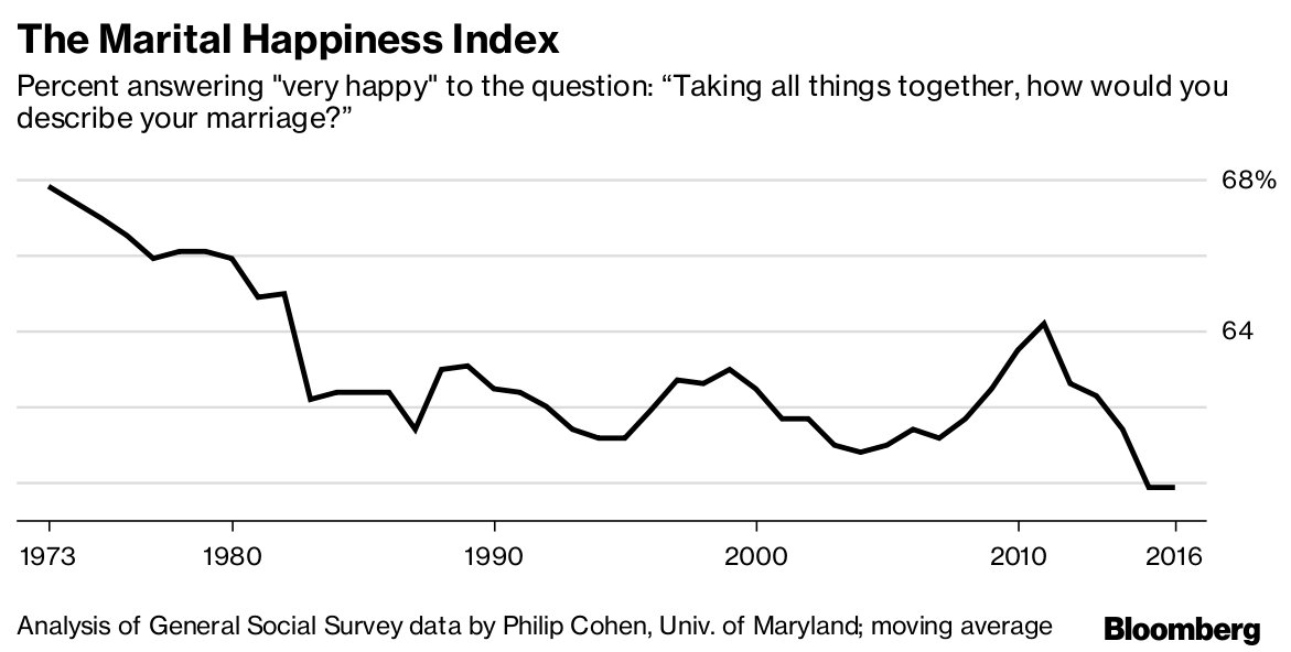 People less happy in their marriage Main driver: lower income (17-point gap between lower- and upper-class) https://www.bloomberg.com/news/articles/2017-10-02/rich-men-with-extreme-politics-have-the-happiest-marriages …pic.twitter.com/IesPbMfhtn