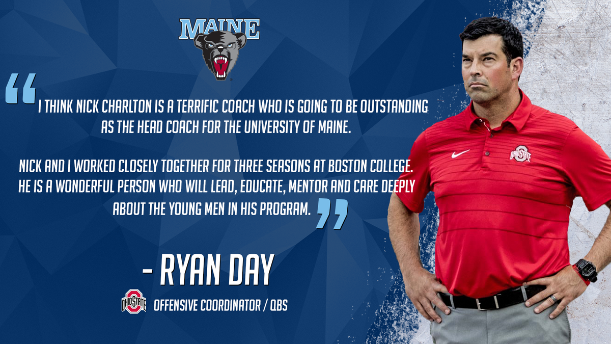 @OhioStateFB head coach@ryandaytime had to say about new Black Bears' head coach@Coach_Charlton#RoseBowl#BlackBearNation#BearWitnesspic.twitter.com/wTirGnPTn9