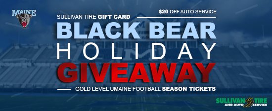 #BlackBearNation! Thanks to@SullivanTire, we’re giving one fan TWO gold level UMaine football season tickets for 2019, and a $100 Sullivan Tire gift card. Don’t miss out on your chance to win! Enter here: http://bit.ly/2C6Jo2T pic.twitter.com/fibsIJ0tRx