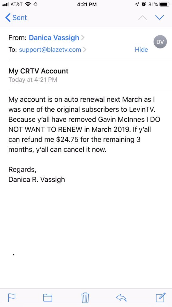 My mom probably doesn’t even know who Gavin is BUT she won’t like hearing that @crtv is censoring. I’ve sent her a text. She can decide about her own subscription. I’ve canceled mine.