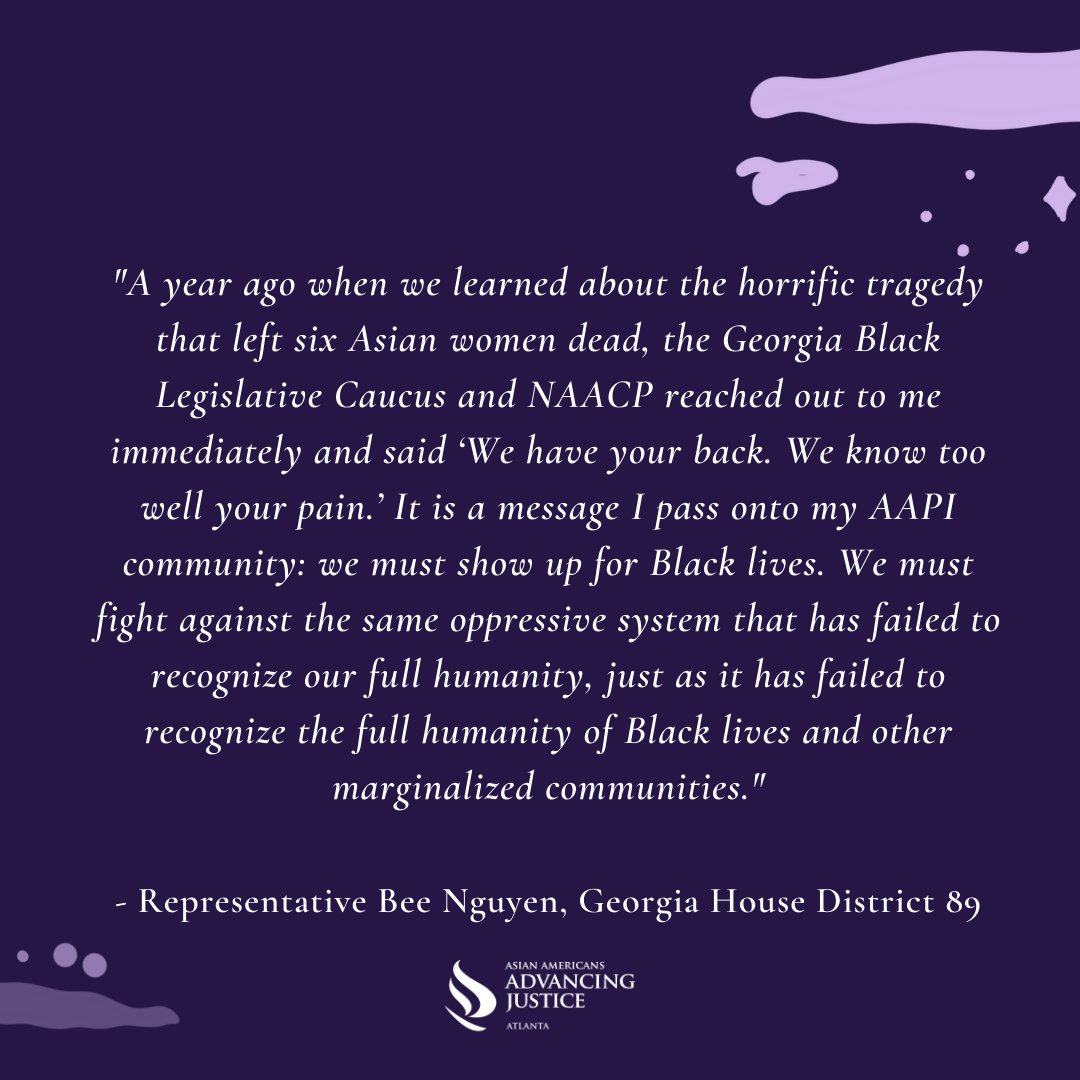 On this anniversary of the Atlanta shootings, we recommit to expanding and deepening our solidarity and community of care -- beginning in Atlanta and spreading throughout the US and the world.