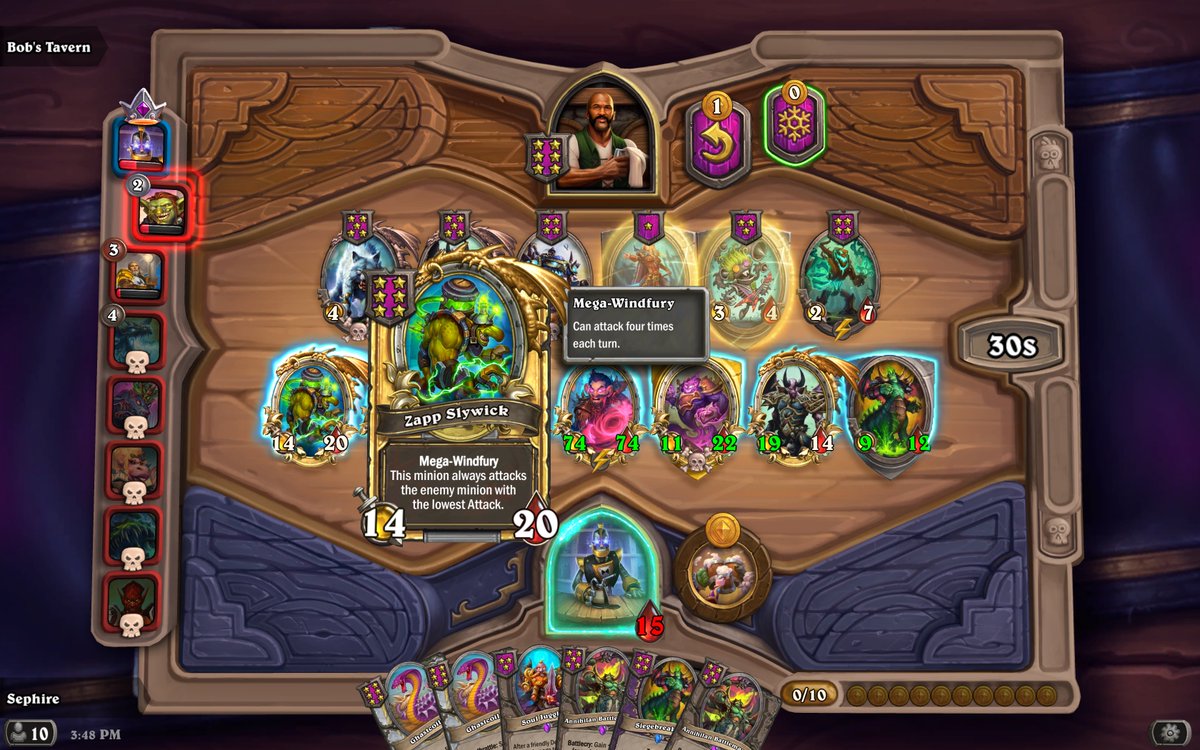 I call this Hearthstone Battlegrounds construction of mine the "Harbinger of Doom and Despair." It's my first time getting a golden Zapp Flywick, and that mega-windfury is an amalgamation of unadulterated destruction! 🔥#hearthstonepic.twitter.com/fMFkjqJDSW