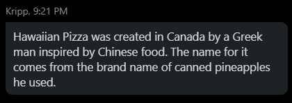 It was a team effort. Hawaiian pizza is the closest we’ve come to world peace