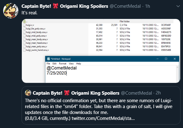 so you're telling me that Luigi being in mario 64 was finally solved 24 years and 1 month after mario 64's release, when the whole myth of luigi in mario 64 was tied to those EXACT NUMBERS (2401), AND if you add those numbers you get 2+4+0+1=7 (July) and 24+01=25, today's date???pic.twitter.com/uvu9uhnhs3