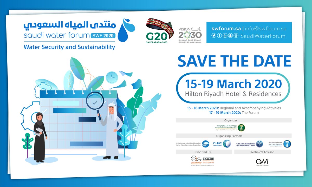 #SaudiWaterForum which will take place at Hilton Riyadh Hotel and Residences from March 15th to 19th 2020, and learn about the latest developments in the water sector in the Kingdom#منتدى_المياه_السعوديpic.twitter.com/LFEATLJXJC