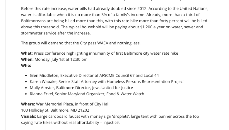 2. Baltimore Right to Water Coalition‏ @BmoreRightToH20 28 jun. 2019