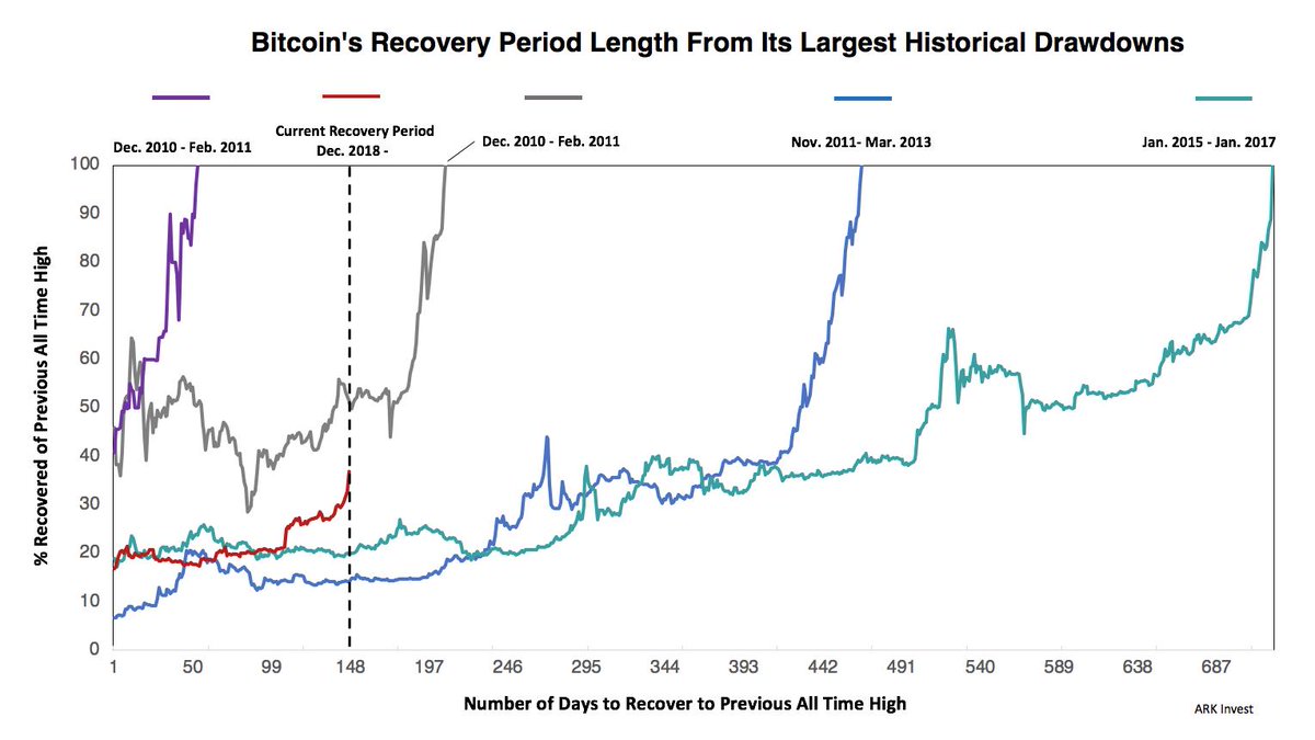 Bitcoin is 148 days into the recovery process from its December 2018 bottom. It is currently at ~40% of its all time high. The longest recovery period from trough to previous peak took 722 days (~ 2 years). I doubt this one will take as long.pic.twitter.com/npHr05fRmi