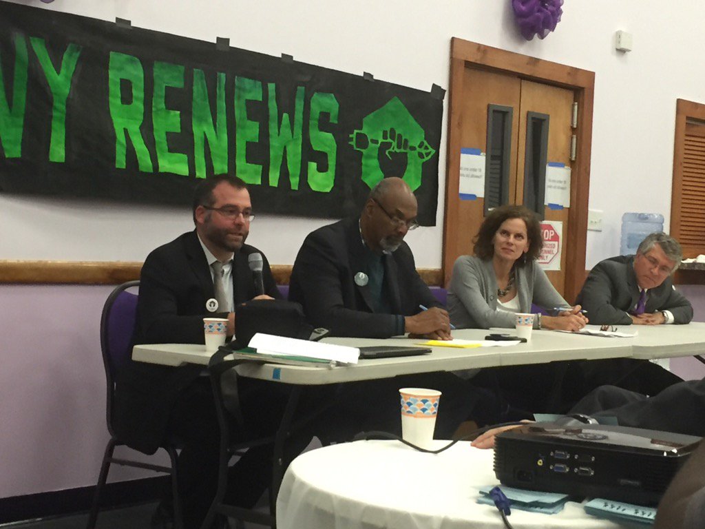 Leaders of @NYRenews & Assem @PatriciaFahy109 & Phil Steck talk ab't need for #climatechange bill at Albany town hallpic.twitter.com/SEYVWg33Vu