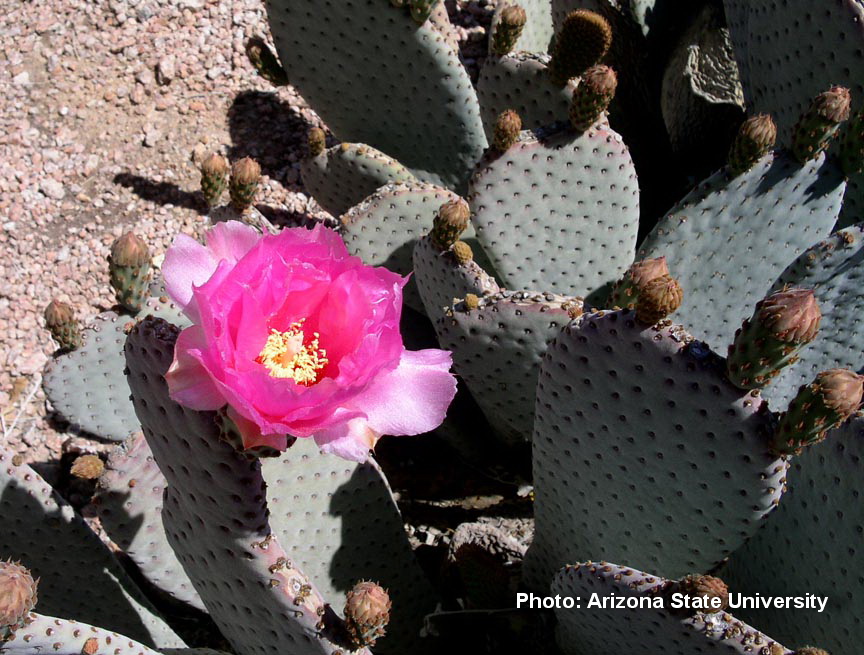 One of my favorite opuntias is Opuntia basilaris, the beavertail cactus. The pads (stems) are spineless and attractive, and the flowers are nice also. Unfortunately, it is not reliably winter hardy here in Maryland, so there will not be one in my outdoor hardy planting.