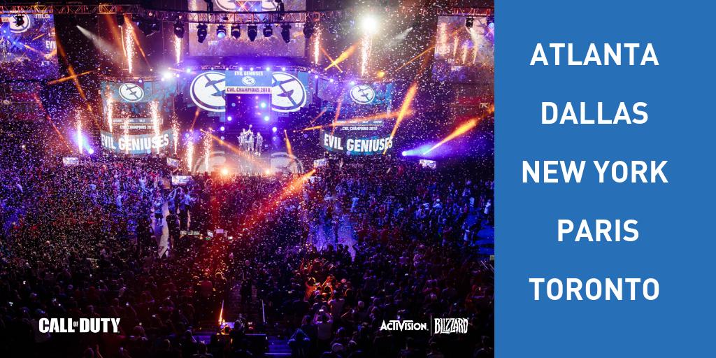 @overwatchleague, we’re proud to welcome the first 5 teams to our new city-based#CallofDuty#esports league:#Atlanta,#Dallas,#NewYork,#Paris &#Torontopic.twitter.com/blWcwf3FQV