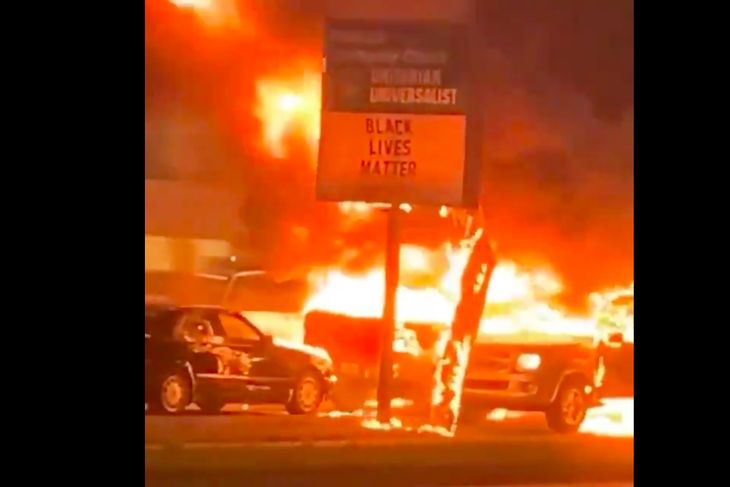 Peak crazy. BLM activists burn Kenosha church with Black Lives Matter sign in front.pic.twitter.com/LU2THpzOZK