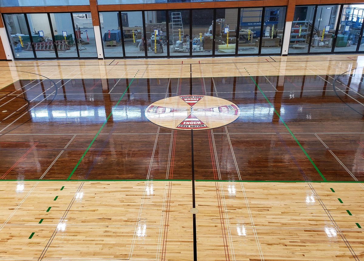 #FeatureFriday & we're showing off a@Action_Floors ProAction Flex#MapleSportsFloor & AirRide® Floor Cover install we did at the Enoch Cree Nation School. We love the how the addition of contrasting@BonaBuzz stains & glossy finish really make this#GymFloor pop!
