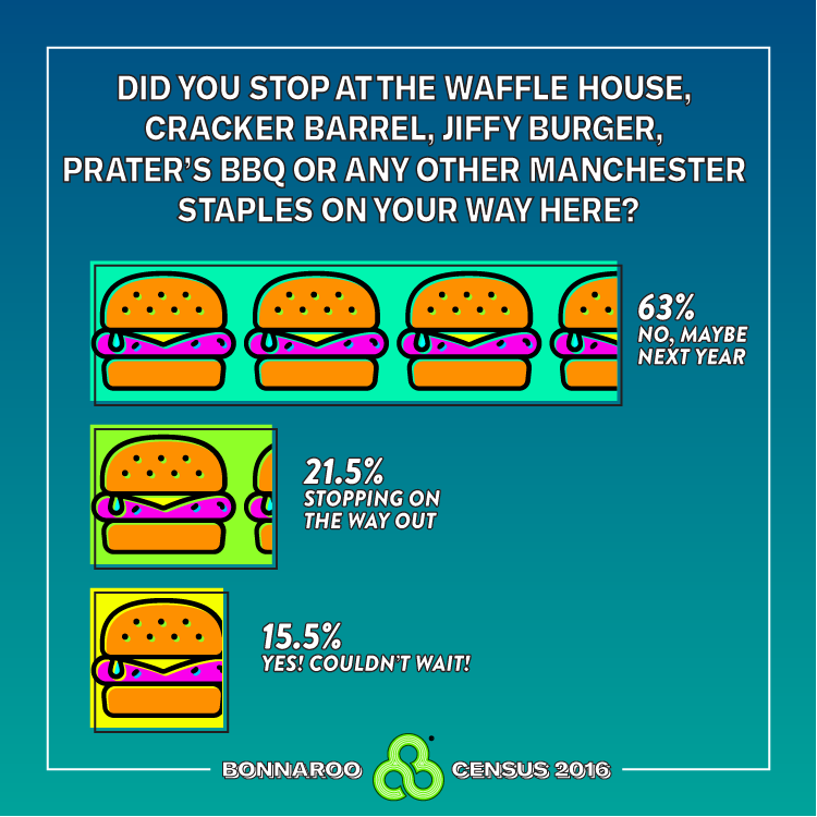 See the 2016 Bonnaroo census results: http://bit.ly/2rkBj3r