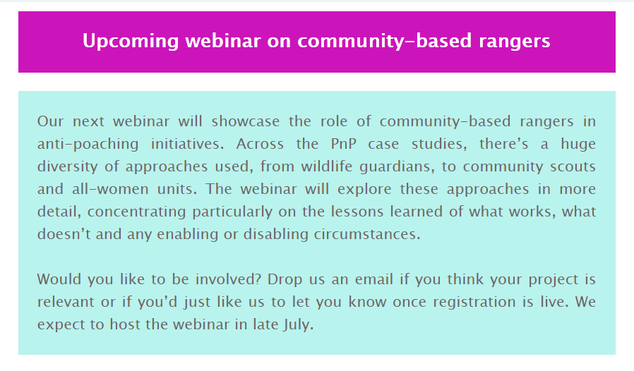 In this issue we feature previous interesting webinars and talks on #illegalwildlifetrade, plus details of our upcoming webinar on#community based#rangers and how you can get involved