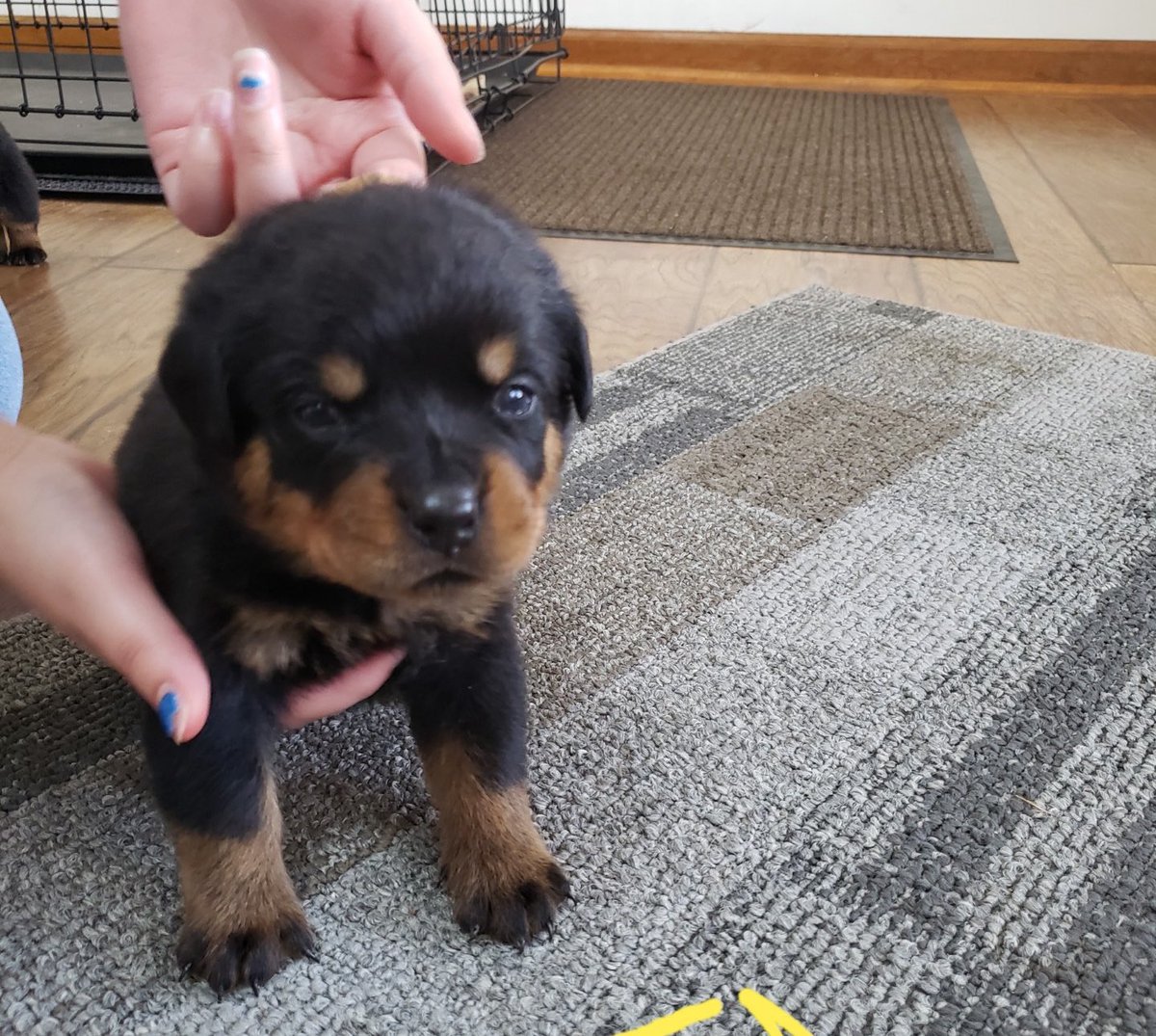 Congratulations! I had a Rottweiler for almost 9 years; he was a wonderful dog. Smart, brave, and very sensitive. They are very attuned to your emotions.