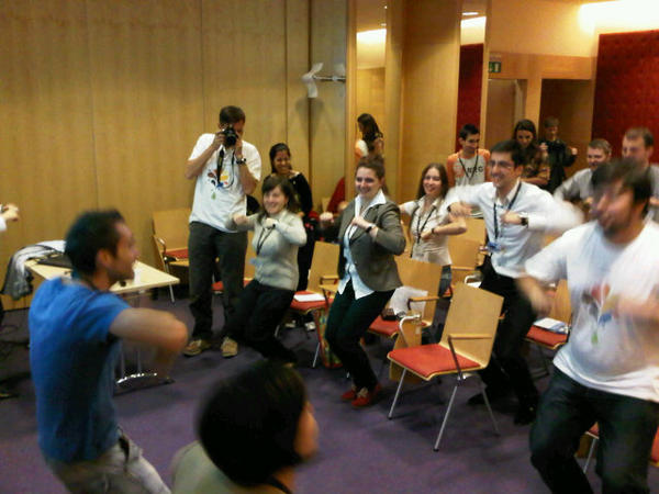 Fotograf @BorutPahor med 'motivacijskim plesom' na mednarodni konferenci mladih @ZavodYpsilon ;)pic.twitter.com/3bl3TSzR