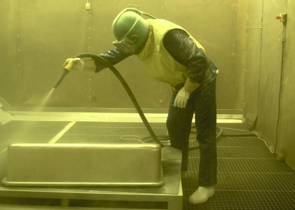 [FOTO DNEVA @BorutPahor] Peskanje kovinskih izdelkov v komori med delom v tovarni Nieros Metal v Slovenj Gradcu :)pic.twitter.com/4ZPynFAv