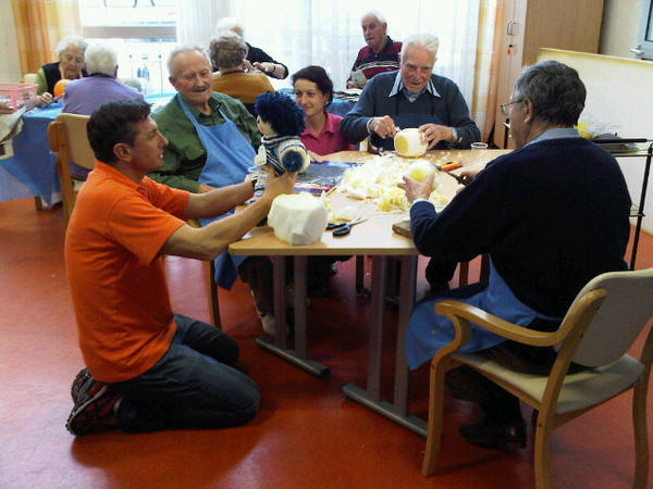 Med ekipo upokojencev, ki pripravlja kose za izdelovanje plisastih punck in fantkov v domu upokojencev LJ-Fuzinepic.twitter.com/Ebx9vfrk