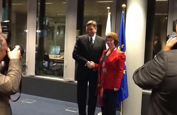 Predsednik Borut Pahor na srečanju z visoko predstavnico Unije za zunanje zadeve in varnostno politiko Catherine Ashtonpic.twitter.com/WzFkB8jk