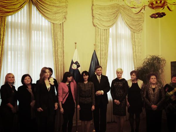 Predsednik republike in prva dama na prijetnem druženju s kandidatkami za Slovenko leta v Predsedniški palačipic.twitter.com/c76T4VPh
