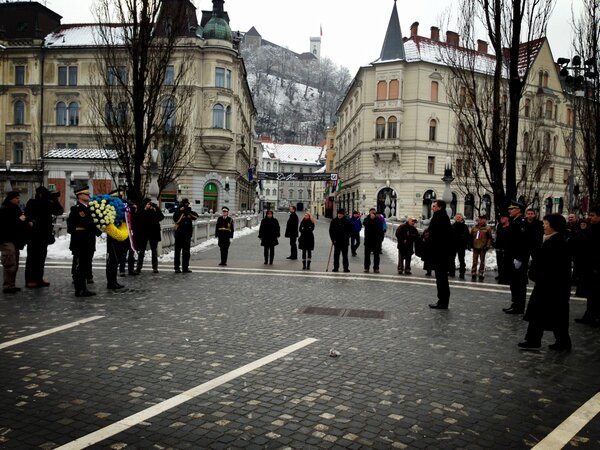 Predsednik republike Borut Pahor ob kulturnem prazniku položil venec pod Prešernovim spomenikom v Ljubljani #8februarpic.twitter.com/cLkvtfSS