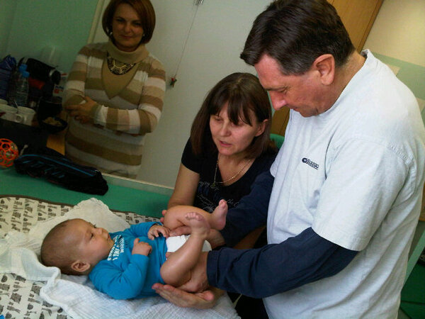 PRS Borut Pahor skupaj z Jozico Potrc med 'therasuit' terapijo z malim Izakom v Drustvu namestopikevejica.si :)pic.twitter.com/Lp71DFFJJP