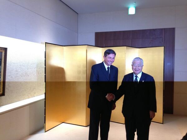 Predsednik republike Borut Pahor in predsedujoči korporaciji Keidanren g. Hiromasu Yonekuro #japonskapic.twitter.com/bHn1mRIDN7