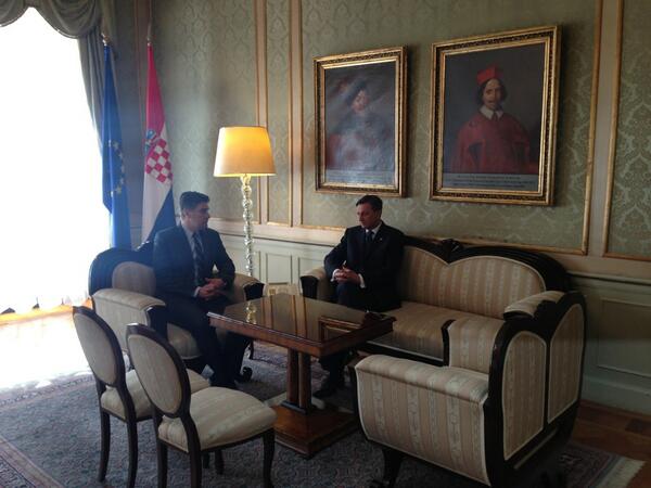 Predsednik Republike Slovenije Borut Pahor na pogovoru s predsednikom Vlade Republike Hrvaške Zoranom Milanovićempic.twitter.com/VSp7pOVaUo