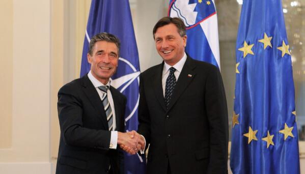 Predsednik RS in vrhovni poveljnik obrambnih sil Borut Pahor z generalnim sekretarjem NATA Andersom F. Rasmussenom.pic.twitter.com/HLi5Gks9oW