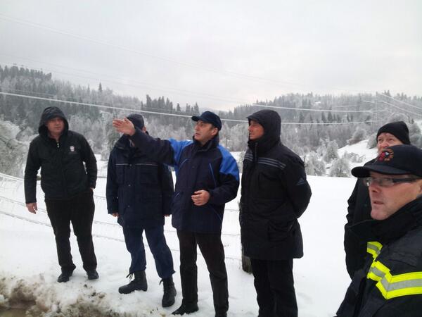 Ogled posledic hude ujme in številnih polomljenih daljnovodov ter pretrganih žic na Notranjskem.pic.twitter.com/44dC6HRJHZ